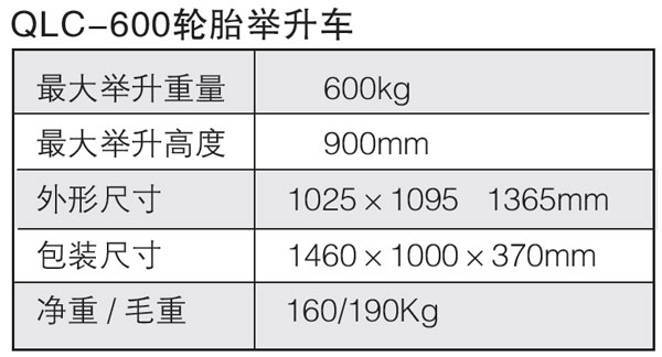 【產(chǎn)品名稱】:QLC-600輪胎舉升車 |